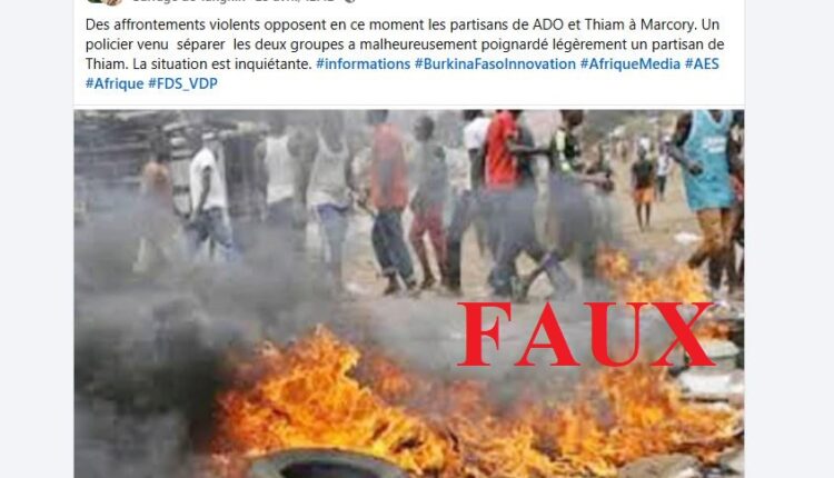 Les partisans d’Alassane Ouattara et ceux de Tidjane Thiam se sont affrontés dans la commune de Marcory. C’est ce qu’indiquent des dizaines de publications partagées sur Facebook. Une photo de cette confrontation fait le tour du réseau social mais en réalité cette image est décontextualisée : elle a été prise en Guinée en 2015.