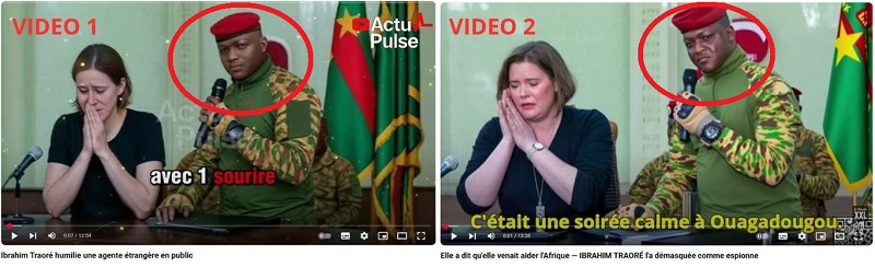 L’histoire est toujours celles de deux personnes venues comme des amis du Burkina Faso mais qui sont en réalité des espions français. Les deux vidéos que nous avons identifiés sur TikTok pour Julien Moreau et sur YouTube pour Claire Dubois visent à relancer un narratif souvent relayé par la junte au pouvoir au Burkina Faso. Il s’agit de celui présentant la France et la Côte d’Ivoire comme les pays qui ont coalisé pour renverser Ibrahim Traoré, l’actuel président du Burkina Faso.