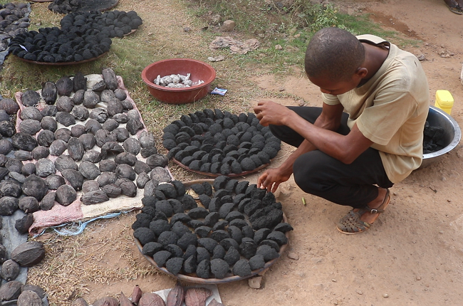 La matière obtenue à la sortie du réacteur de pyrolyse (matière carbonisée) passe au compostage et est consolidé grâce à un liant. Séché de façon naturelle grâce aux rayons du soleil, le bio-charbon est prêt à l’emploi ! Et pour maximiser le potentiel du bio-charbon, l’Association des propriétaires de forêts naturelles et plantations d’Affery a développé un fourneau innovant qui « évite la production de fumée et la perte d’énergie lors de la combustion » confirme Aka Allé Lydie une ménagère.