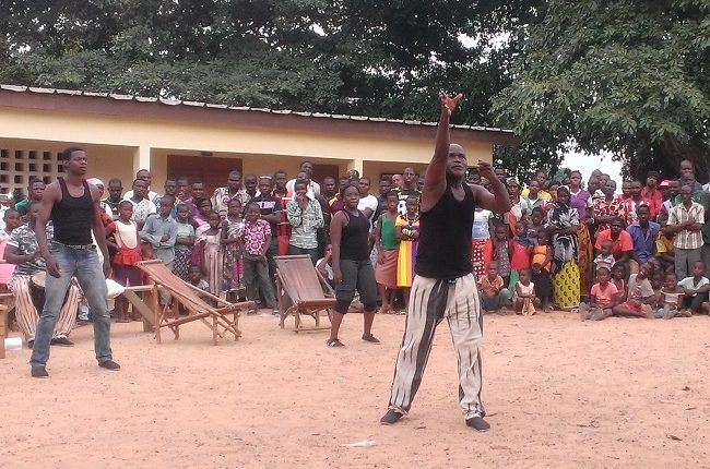 Au 3ème jour de cette campagne le vendredi 21 avril, sur une place publique à Zagné en présence du chef du village, comme à chaque étape, la troupe arrachait un silence total à l’assistance avec des messages émouvants et moralisateurs ou à l’inverse, avec des scènes comiques, l’hilarité du public qui applaudissait parfois à tout rompre.