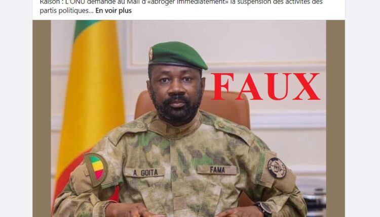 Plusieurs publications partagées notamment sur Facebook indiquent que le Mali a quitté l’ONU et l’Union Africaine « avec effet immédiat ». Les recherches menées sur les canaux de communication officiels du gouvernement malien montrent que cette information est fausse.