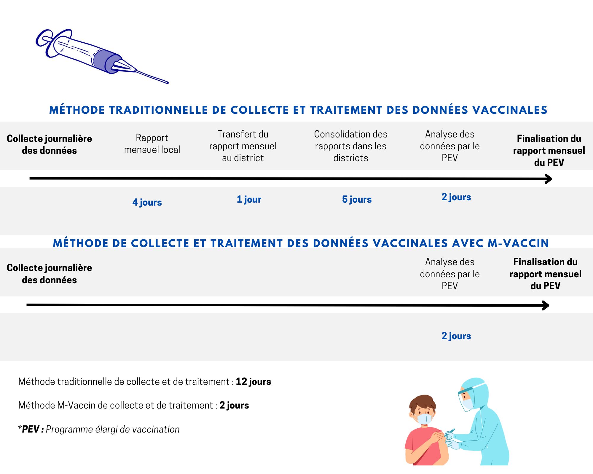 Selon les informations recoupées auprès du Programme Elargi de Vaccination (PEV) et du Ministère Ivoirien de la santé et de l’Hygiène Publique, l’application M-Vaccin permet de réduire de 10 jours le mécanisme de collecte et de traitement des données personnelles.